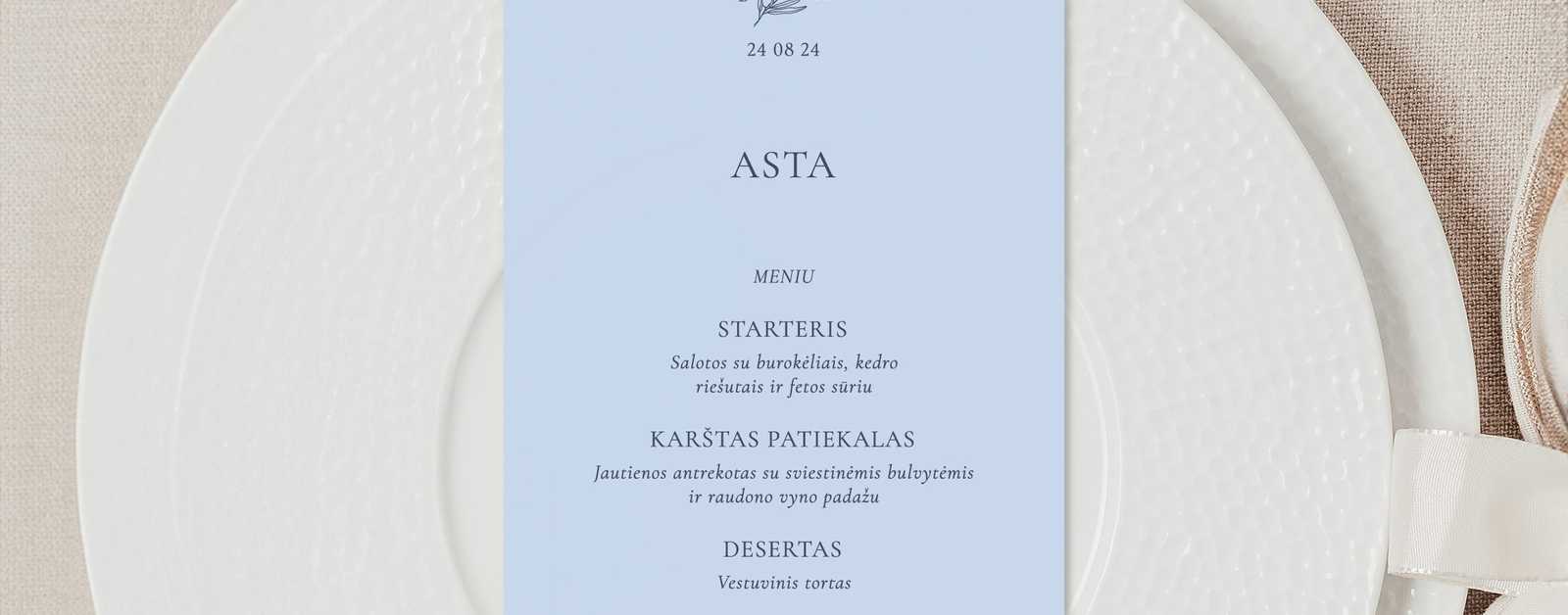 Visuomet nemažai dėmesio sulaukia ir ypatinga šventės vakarienė. Meniu kortelė - tai spauda, kuri supažindina svečius su šventės patiekalais ir gėrimais. Jos dizainas derinamas prie visos šventės dienos spaudos, atspindi ir pabrėžia jos dekorą.