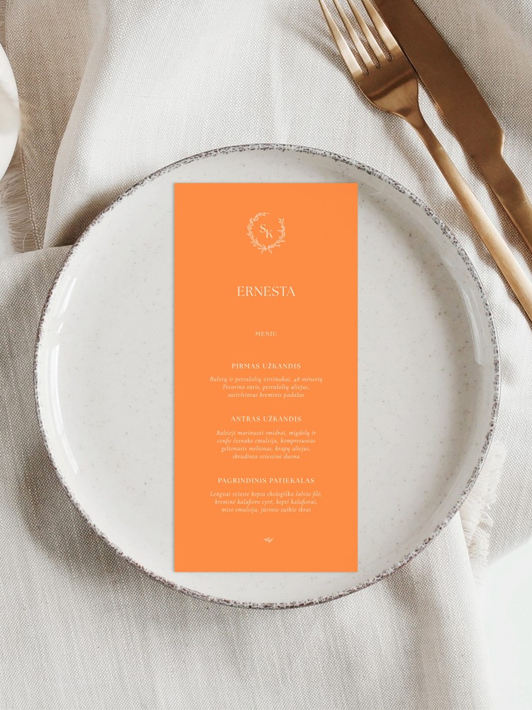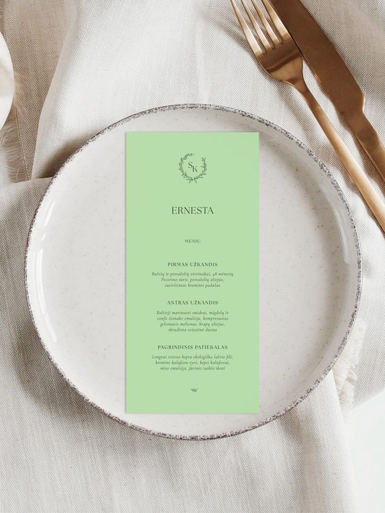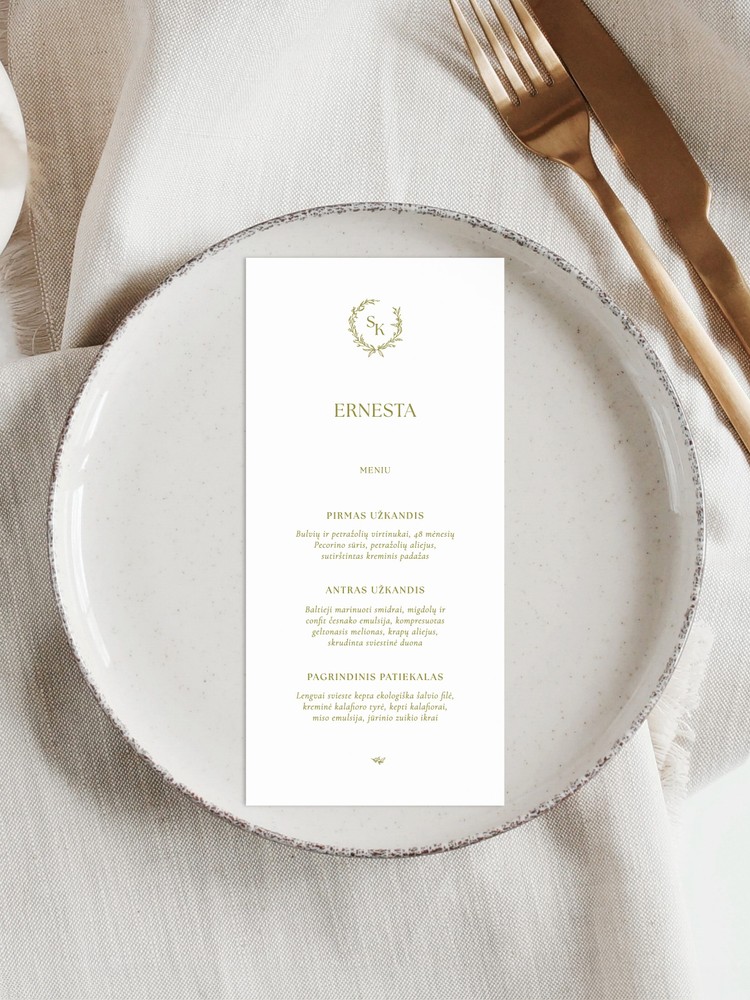 Įrašykite visų šventės dalyvių vardus, jaunųjų inicialus ir patiekalų pasirinkimus.
