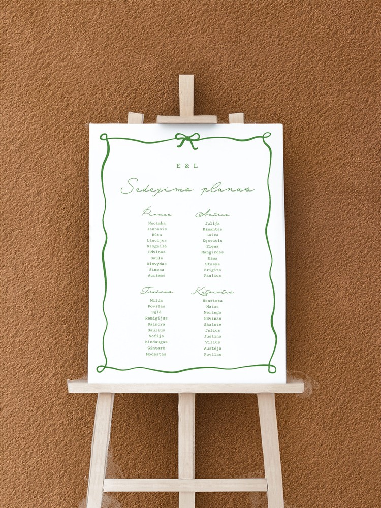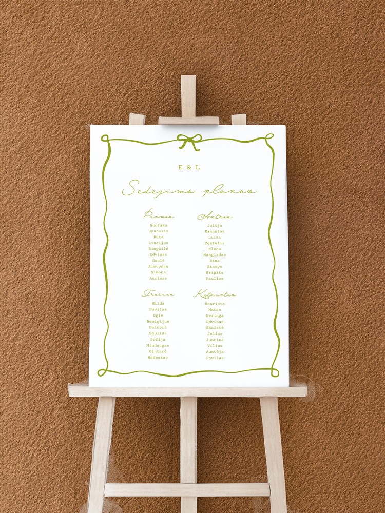 Įrašykite jaunųjų vardus, šventės datą ir sėdėjimo planą.